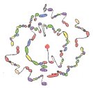 If, for instance, the music were in 4/4 time, a whole note would take up the complete segment and the half note just half, and so on. The pitch of the note is accurately denoted by its position given by the tone and semitone circular lines, and by their colour. The harmonies can be seen by the colour combination of each segment.